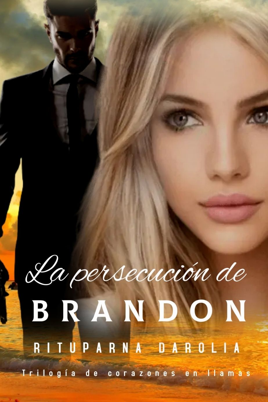 El libro que describes es La persecución de Brandon, el segundo de la trilogía Corazones en llamas escrita por Rituparna Darolia. Esta entrega continúa la tormentosa relación entre Brandon Davis (alias Zander Reid) y Genelia Mitchell, marcada por el deseo de venganza, una química irresistible y un pasado que no deja de perseguirlos.